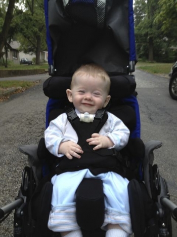 Nathaniel went apple picking with his big brothers in his new medical stroller.